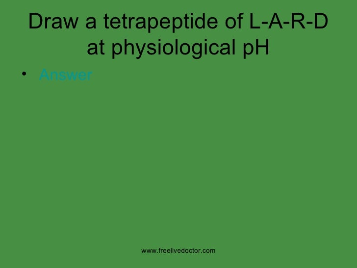 - 18. Draw a tetrapeptide of L-A-R-D at physiological pH Answer www.freelivedoctor.com