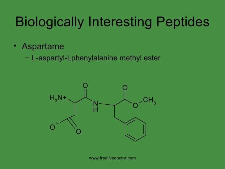 - 19. Biologically Interesting Peptides Aspartame L-aspartyl-Lphenylalanine methyl ester www.freelivedoctor.com