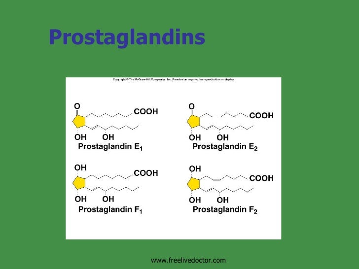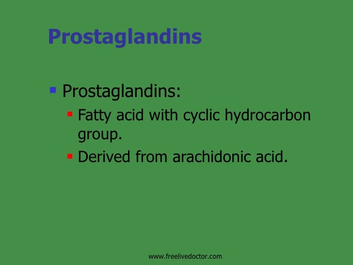 - 53. Prostaglandins Prostaglandins: Fatty acid with cyclic hydrocarbon group. Derived from arachidonic acid. www.freelivedoctor.com